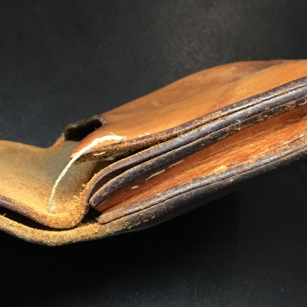 こんな感じで小銭入れの部分が完全にほつれてしまっています。